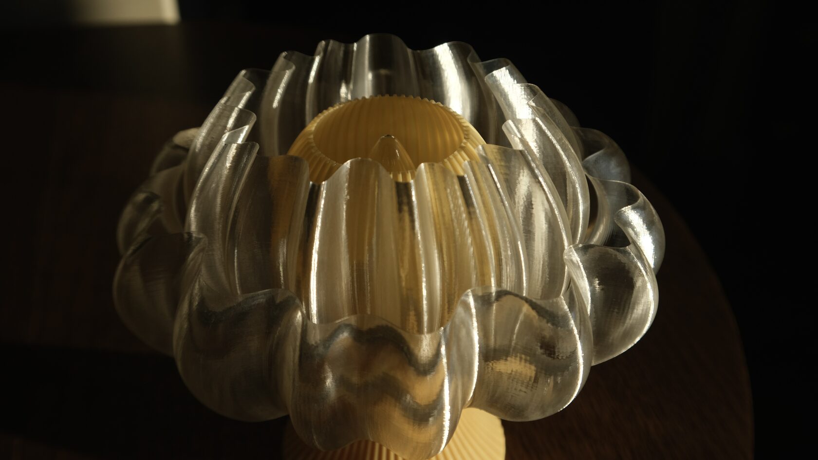 Живые контуры и прозрачные слои создают завораживающее рассеивание, похожее на тонкие кристаллические поверхности.